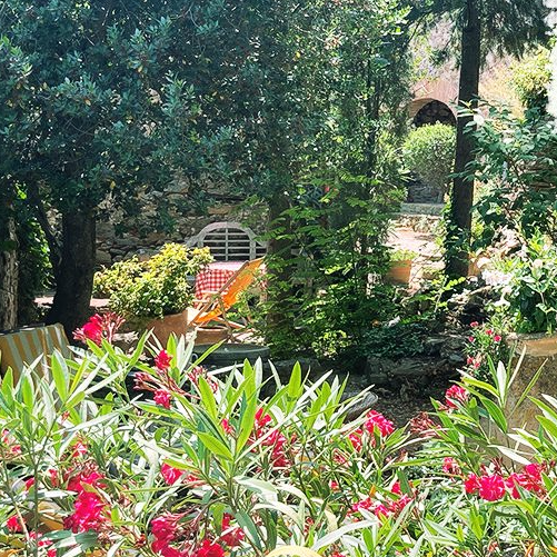 Je nach Jahreszeit und Sonnenstand hat jedes Plätzchen seinen Reiz, im Schatten am plätschernden Brunnen, mit dem Liegestuhl unter einem Baum, oder am Tisch mit gemauerter Sitzbank windgeschützt ganz hinten im Garten - oder einfach nur durchgehen, über verwitterte Steinstufen hinweg einfach nur mal schauen, wohin gerade der Wind weht ...