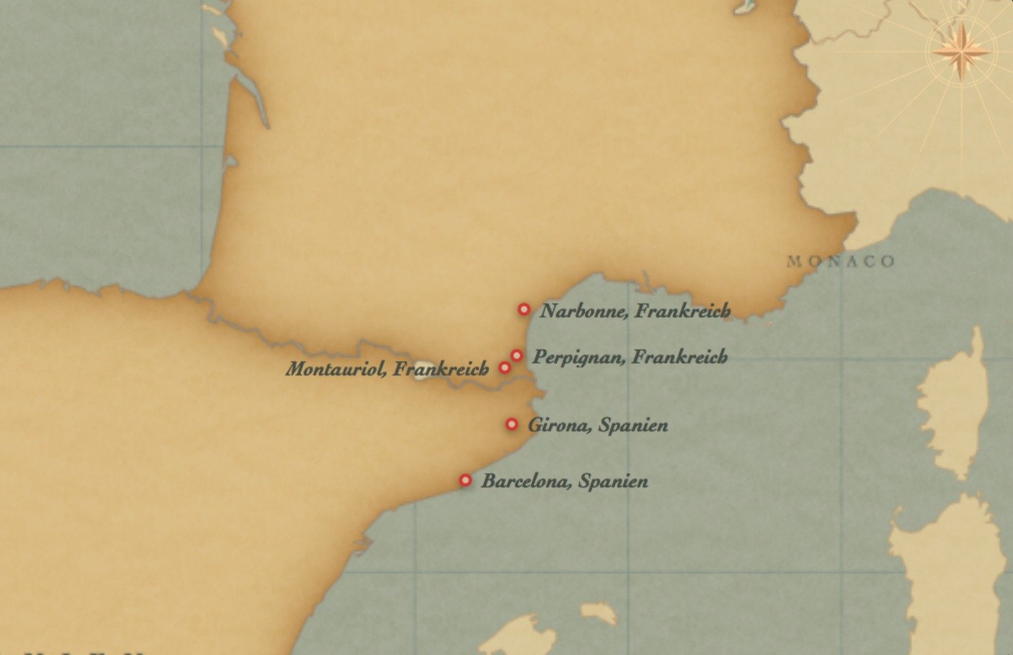 Bei der Anreise mit dem Auto nehmt ihr die A9 Richtung Barcelona, Ausfahrt Nr. 42, Perpignan-Sud. Von hier aus sind es noch 20 min bis nach Montauriol.